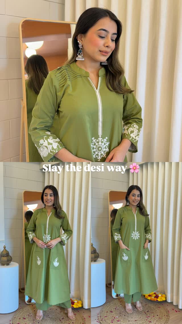 Step into elegance with this cotton kurti and pant set featuring intricate full embroidery on the front and sleeves. Designed with functionality and style, it includes two front pockets for a modern touch. Crafted in breathable cotton, this outfit is ideal for daily wear and festive occasions.