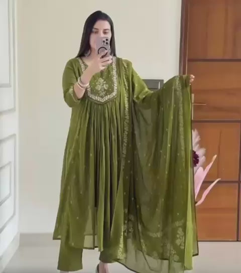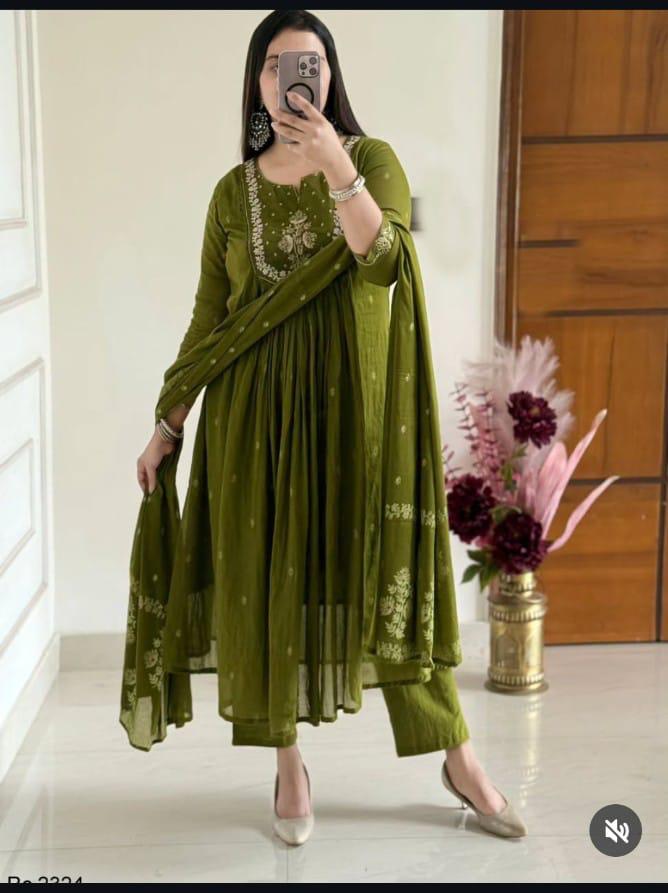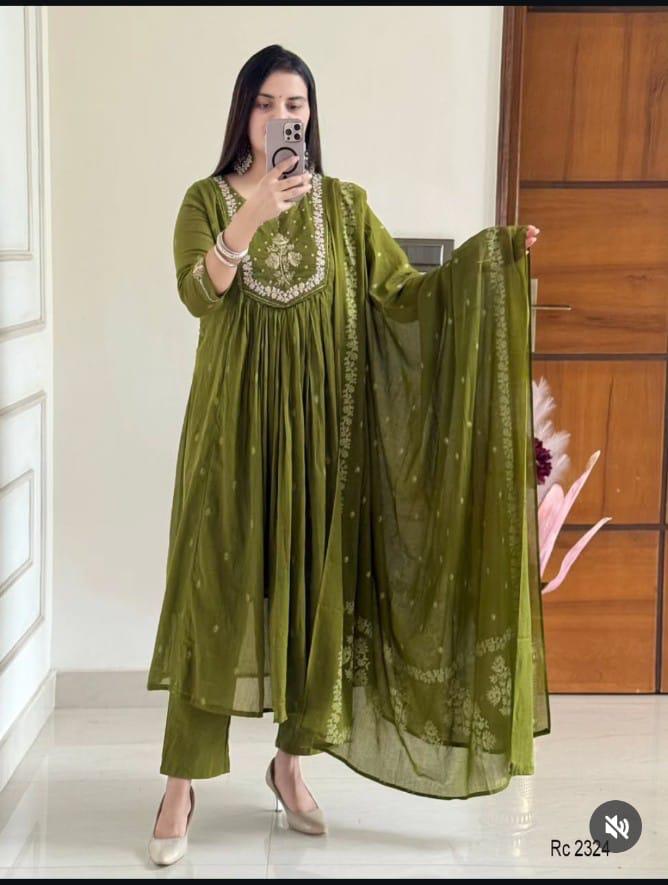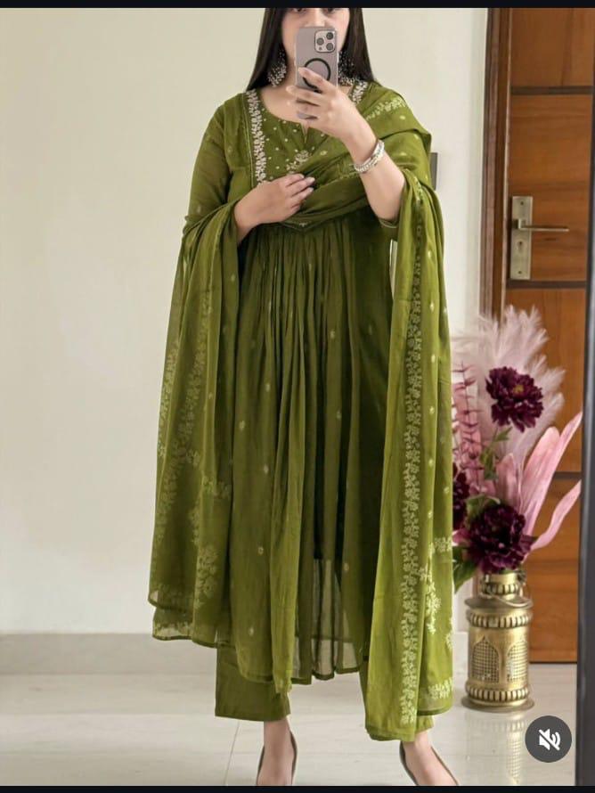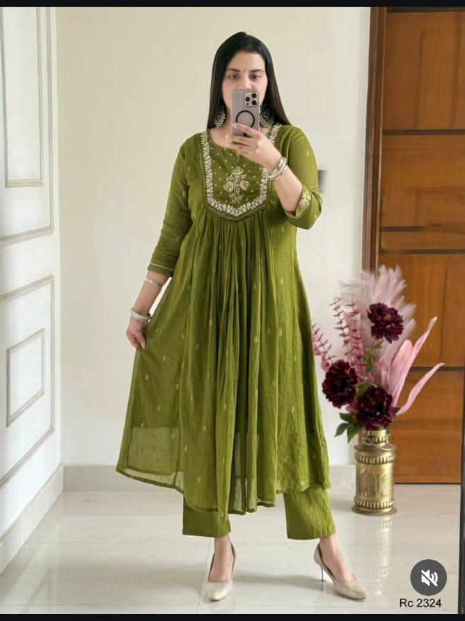 Pure Cotton Kurti with Pant & Dupatta | Heavy Embroidery | Fully Stitched |